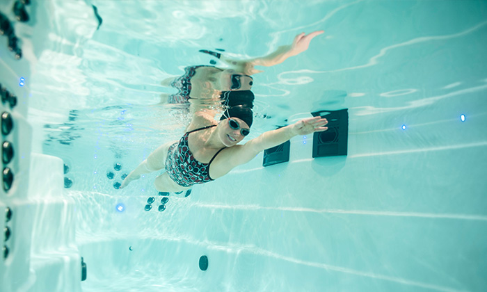 By simply placing a mirror at the bottom of a Swim Spa, you can get real-time feedback on your form and make adjustments as you swim. Everything from hand entry, hip rotation and head position can be monitored as you workout so you can make stroke improvements on the fly everyday. For a different angle of your stroke, a Swim Spa makes it easy for someone to record your swim with any smartphone or tablet so you can make more improvements or share with a coach.